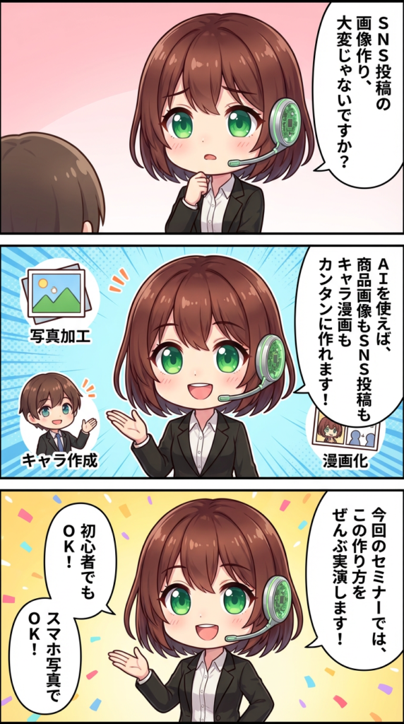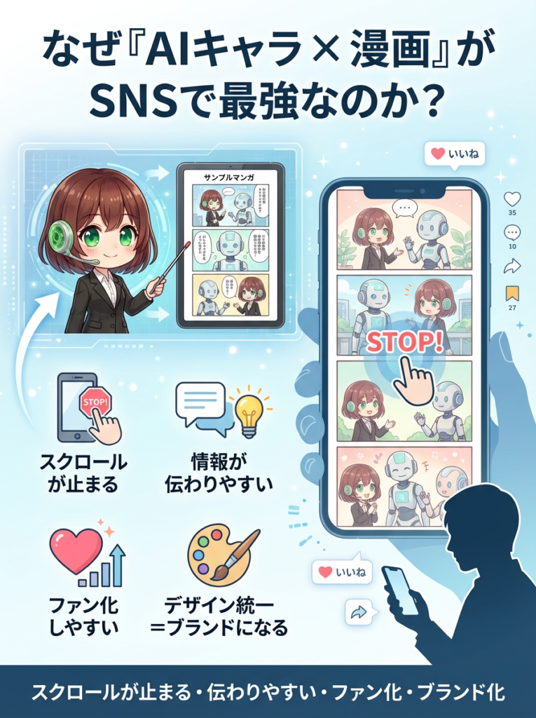 AIキャラ × 3コマ漫画 × SNSデザイン の3つを中心に、