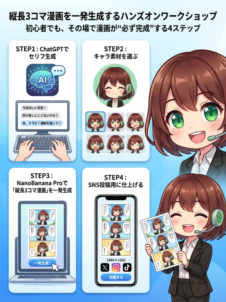 “縦長3コマ漫画を一発生成するワークショップ”**