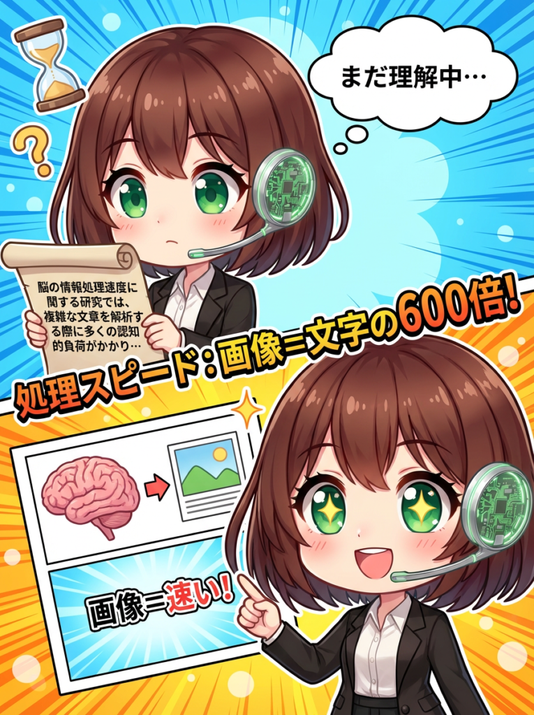 👀 【データ5】脳は画像を文字の600倍速く処理する!